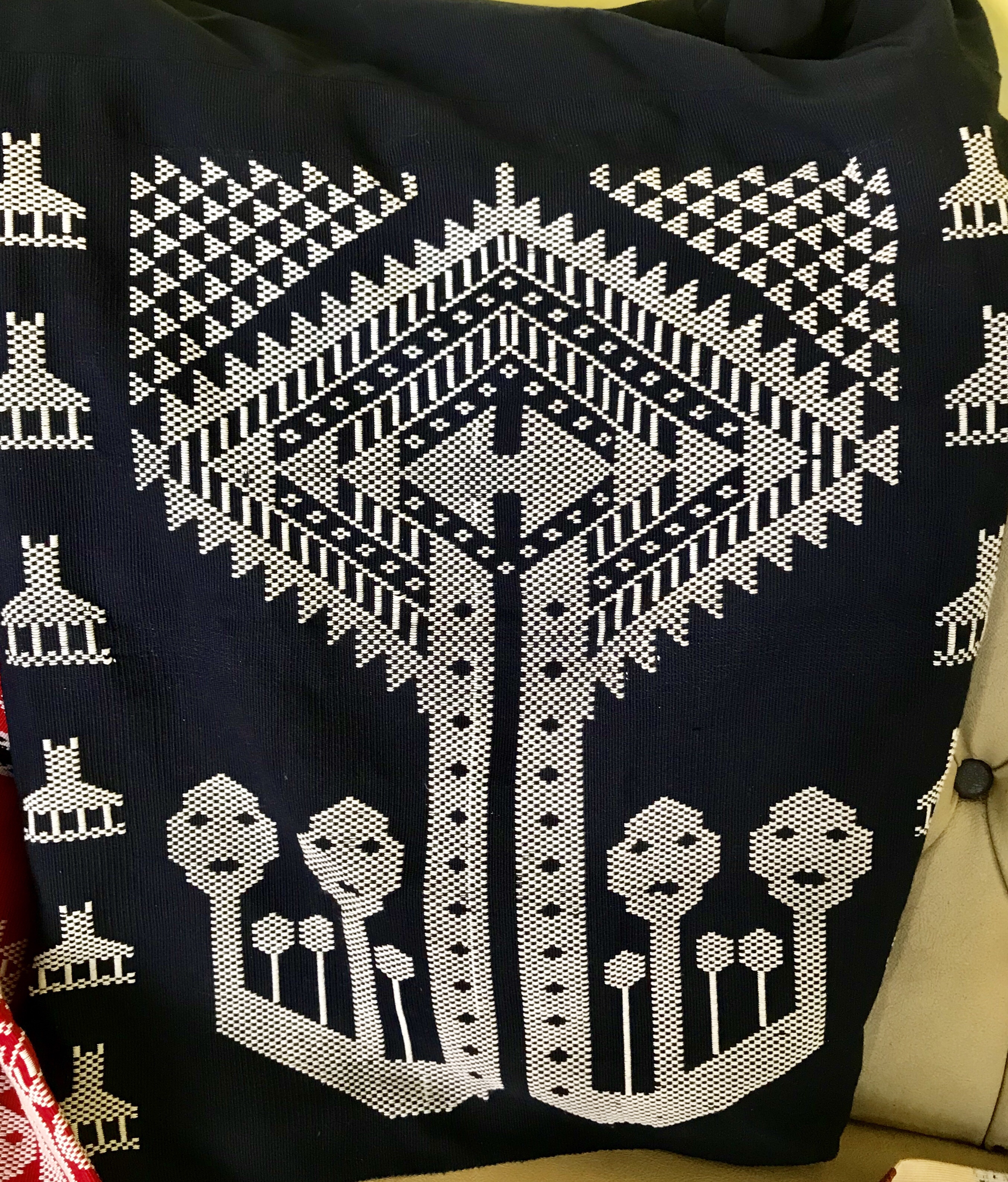 Dutifully she honored her obligation and married the young man. She proudly showed us the photographs on the walls of her palace porch depicting her ancestors, her wedding and her husband. Soon after marriage she realized that raising children and rice was not enough for an educated young woman and that weaving could become a good source of income and respect for her and the women in her kingdom. She perfected old techniques and invented new patterns and combinations using only natural dies and now her creations are sought after by discerning international collectors.