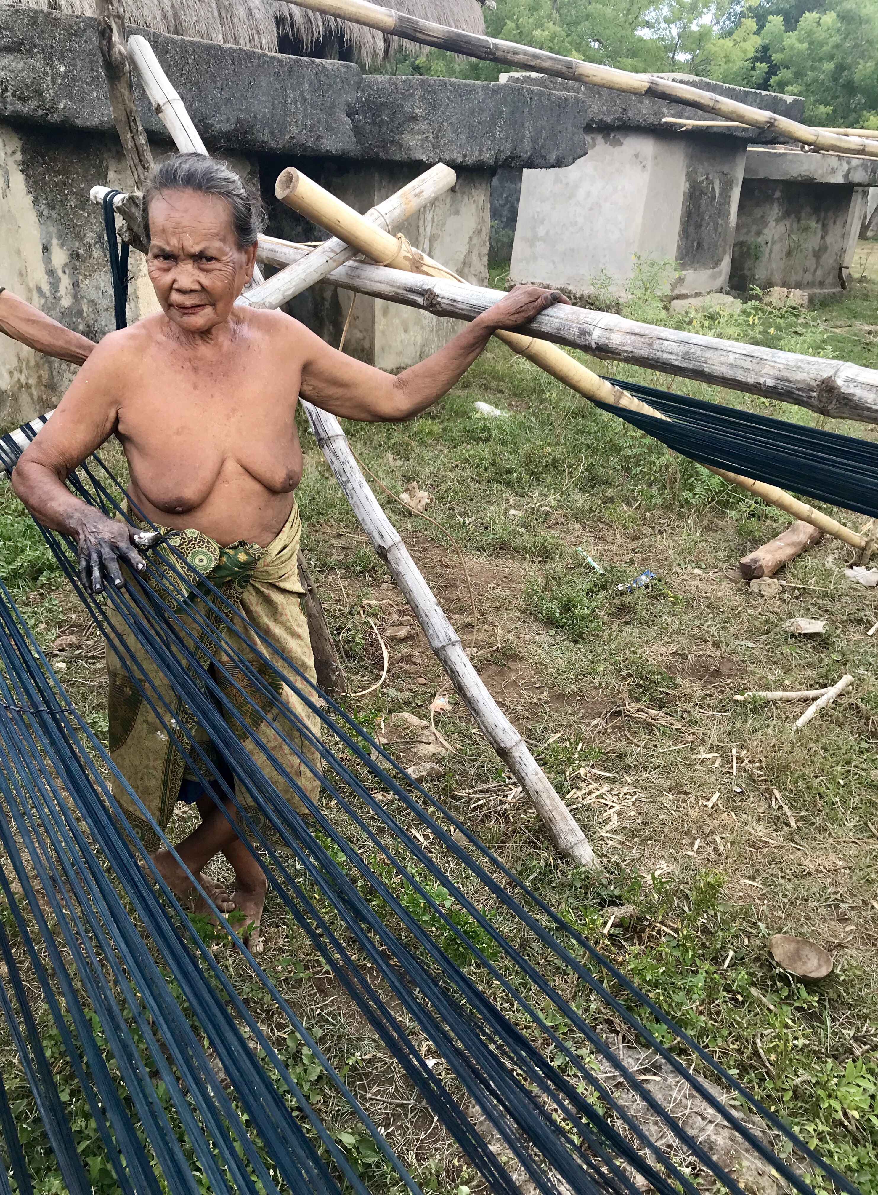 Turns out it was easier than we thought. We were welcomed and presented with the visitor log by the very cousin of the queen. After initial exchange of pleasantries I pulled out my iPhone and started showing her the photos from the textile gallery in Bali where years ago I first saw the extraordinary weavings from Queen Eti. I had a photo of a beautiful woman weaver but when I said I would like to meet her, the cousin said, “No, you don’t want to meet her! She is just a slave!”