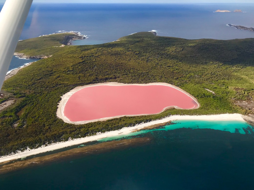to see all those beautiful colors of the pink Lake Hiller on the Middle Island in the Cape Arid National Park.