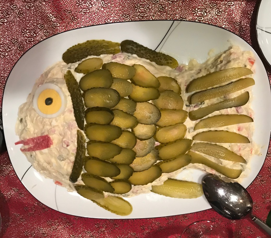 But the crowning glory of our Christmases has always been Mirek’s marvelous potato salad, each year decorated differently.